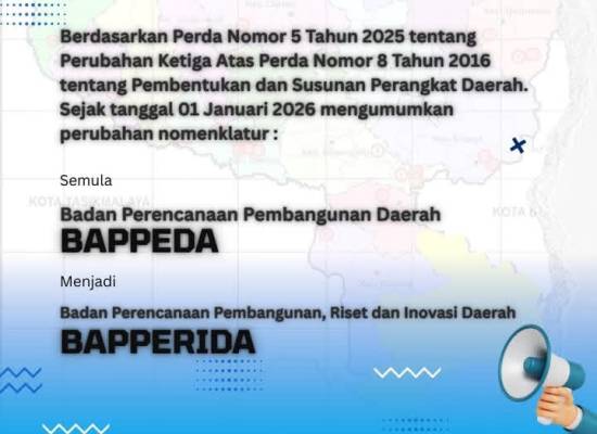 “Transformasi BAPPEDA menjadi BAPPERIDA merupakan bentuk penyesuaian kelembagaan daerah terhadap tuntutan pembangunan yang semakin kompleks. Perencanaan pembangunan saat ini harus mampu menjawab persoalan daerah secara komprehensif,” jelasnya kepada deJurnal Jumat (02/01/2026)