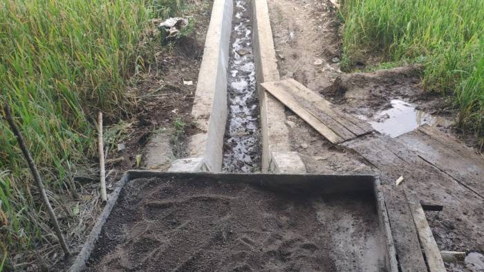 “Awalnya memang pakai semen bermerek standar, tapi di tengah jalan berganti jadi semen murah. Kalau begini, bangunan irigasi bisa cepat rusak,” tegasnya.