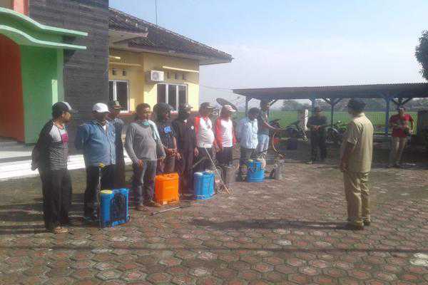 Sebelum dilaksanakan penyemprotan dilakukan briefing dulu dan juga arahan Sosialisasi tentang pencegahan penyebaran Covid-19.***H’Man