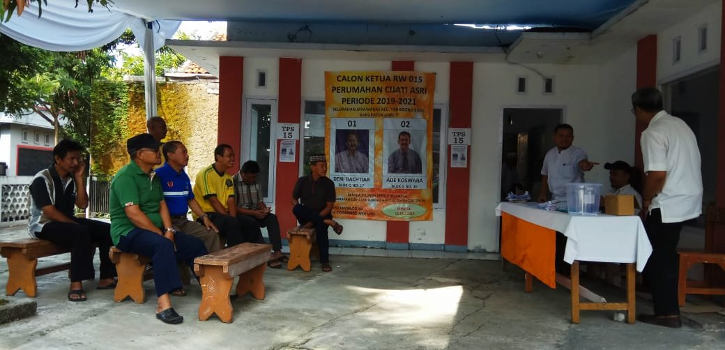 Hasil akhir pilpres rasa RW yang digelar di Komplek Cijati Asri, Kelurahan Jayawaras Kecamatan Tarogong Kidul akhirnya dimenangkan oleh calon 02 Ade Koswara dengan raihan 53, 55 % mengalahkan kandidatnya 01 Deni Bachtiar dengan raihan 45,97 %, Minggu (12/5/2019).