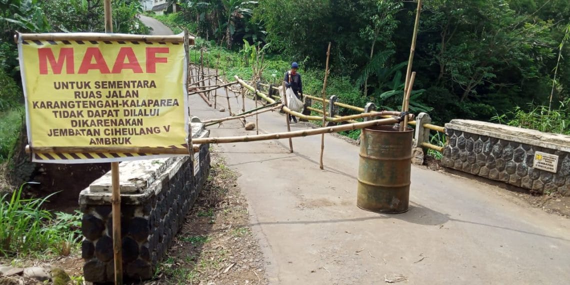 “Aparatur pemerintah juga langsung datang, ada PU DLLAJ kepolisian juga ada sambil pasang police line juga bambu yang di silang oleh warga untuk menghalangi supaya tidak ada yang lewat,” kata Pupud Saepudin, Minggu (10/05/2020).