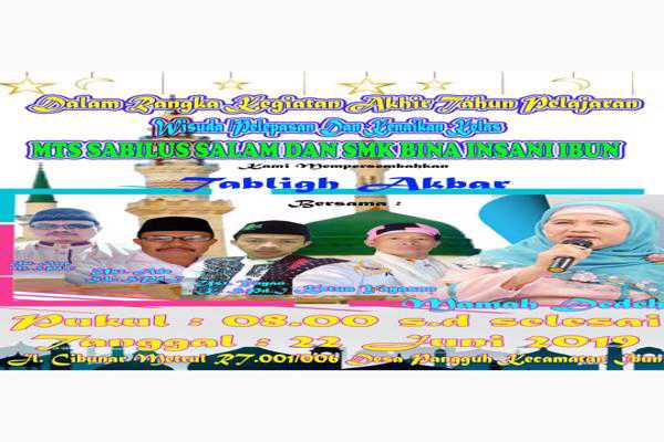 Yayasan Bina Insani Ibun yang beralamat di Jalan Cibunar- Metrul Rt 01/06 Desa Pangguh Kecamatan Ibun, menggelar kegiatan wisuda pelepasan dan kenaikan kelas Mts Sabilul Salam dan Smk Bina Insani Ibun. Dalam kegiatan tersebut diisi dengan tabligh akbar yang menghadirkan penceramah Mamah Dedeh.