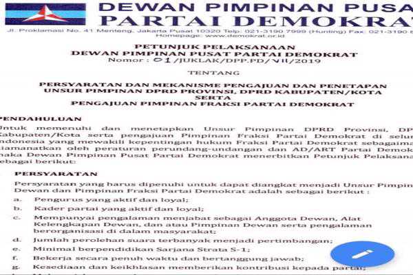 Tentang persyaratan dan mekanisme pengajuam dan penetapan unsur pimpinam DPRD propinsi, daerah dan kota serta pengajuan pimpinan Fraksi Partai Demokrat.