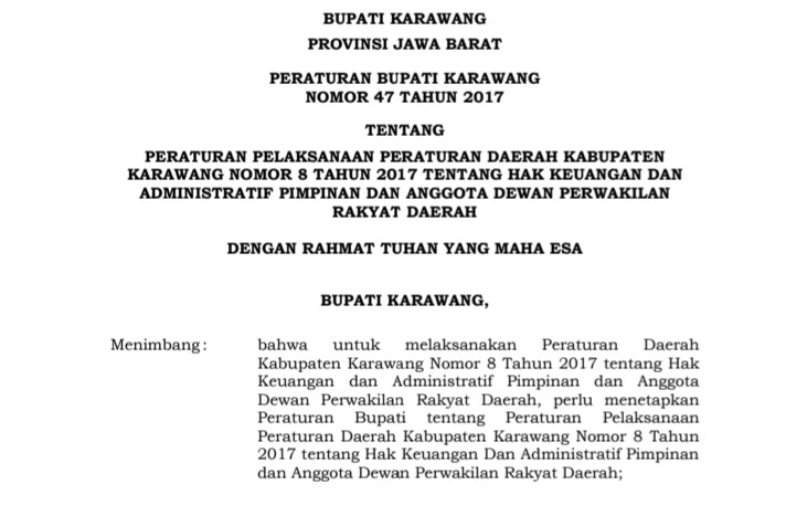 Hal ini sangat berbeda dengan Perbub yang mengtur tentang gaji dan tunjangan dewan di poin Perbub disebutkan gaji anggota sebesar Rp 1.570.000 dan tunjangan transport sebesar Rp 12 juta serta tunjangan perumahan sebesar Rp 19.500.000 bila dikalkulasikan seluruhnya hanya mencapai Rp 33 juta namun anehnya Setwan membayar Rp 43 juta untuk 50 anggota dewan sehingga timbul pertanyaaan apa hal ini disengaja atau memang hilap sehingga butuh pengkajian lebih mendalam dan yang berwenang untuk menindaklanjuti hal ini tiada lain Kasi Pidsus Kejari Karawang.