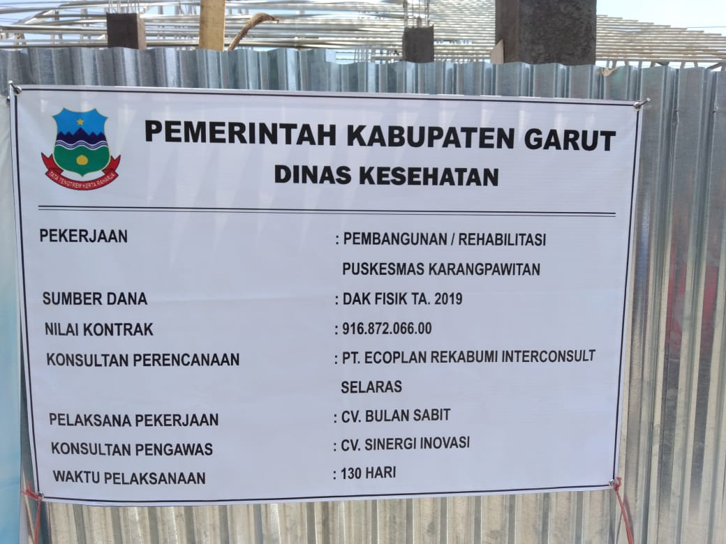 Penelusuran dejurnal.com di lapangan, pembangunan / rehabilitas Puskesmas Karangpawitan yang dimonev Sekda, anggarannya bersumber dari DAK Fisik Tahun Anggaran 2019 senilai Rp 916.872.066.
