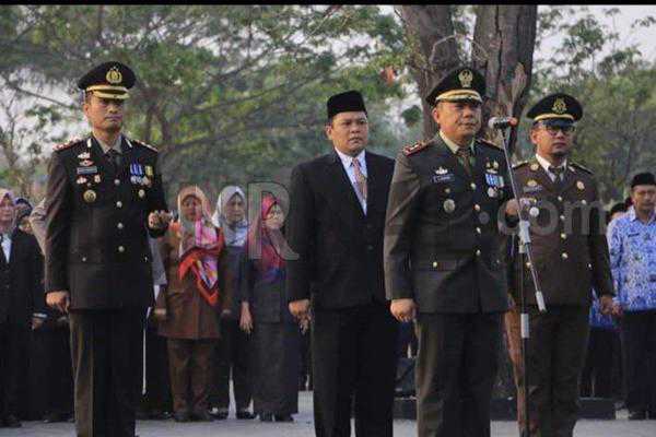 Dejurnal.com, Karawang – Kapolres Karawang AKBP Nuredy Irwansyah Puta S.H S.I.K M.H dan Dandim 0604 Letkol Inf Endang Sumardi menghadiri upacara ziarah dan tabur bunga di Taman Makam Pahlawan Pancawati Klari Karawang, Minggu (10/11/2019) pagi.Kegiatan tersebut diselenggarakan dalam rangka memperingati Hari Pahlawan yg jatuh pada tanggal 10 di bulan November. Dandim 0604/Karawang Letkol Inf Endang Sumardi S.Sos bertindak sebagai Inspektur upacara kegiatan ziarah dan tabur bunga.Dandim 0604/Karawang memimpin penghormatan kepada arwah para pahlawan dan meletakkan karangan bunga sebagai tanda penghormatan kepada jasa para pahlawan.Kemudian acara dilanjutkan dengan pembacaan do’a. Kegiatan ini di ikuti Unsur Forkopimda Kabupaten Karawang, TNI-POLRI dan Pelajar, peserta upacara juga diberi kesempatan untuk menaburkan bunga di pusara untuk para pahlawan yang gugur dan dimakamkan di TMP Pancawati.***RIF