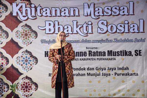 Melalui kesempatan tersebut, Bupati Anne menjelaskan bahwa kini mulai banyak simpul warga yang menggelar sunatan massal. Menurut dia, kegiatan tersebut merupakan indikator bahwa warga Purwakarta sudah memiliki tingkat kepedulian sosial, kemandirian dan kreativitas.