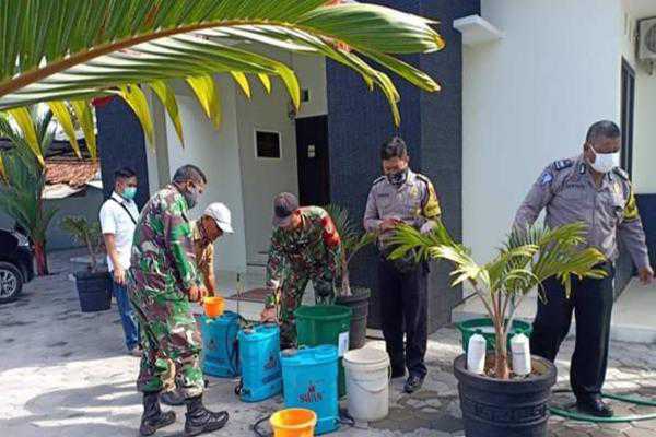 Penyemprotan cairan disinfektan secara serentak / massal dilakukan bersama sama dengan Muspika Kecamatan Kotabaru dan unsur lainnya, hadir dalam kegiatan tersebut Camat Kotabaru – Drs.Dedi Setiadi. Danramil Cikampek – Kapten Inf Suryadi. Kapolsek Kotabaru – Iptu.Tata suhendar, SH.