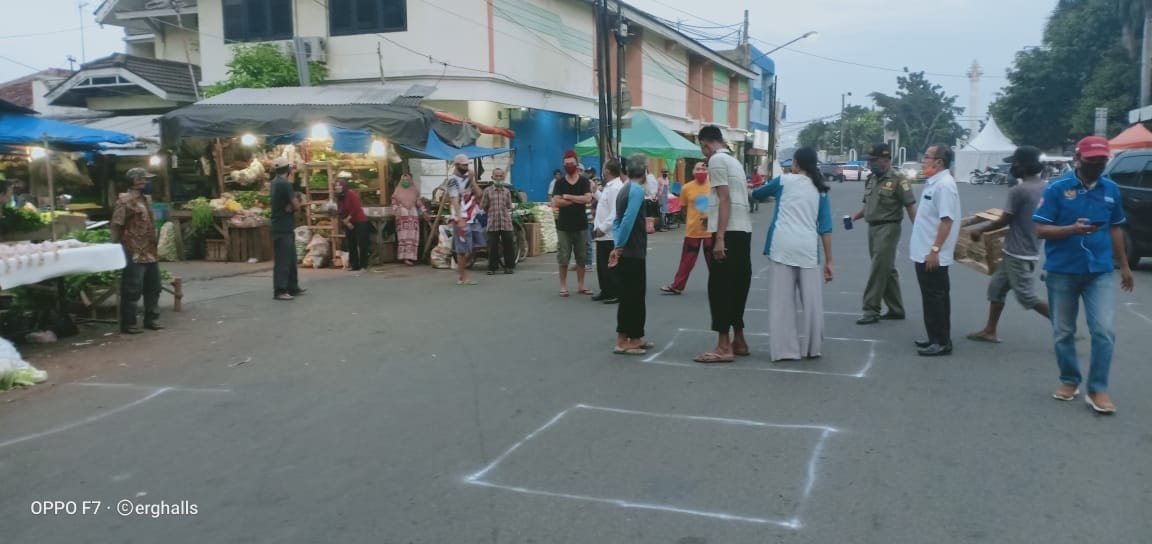 Pemerintah akan membuat Marka untuk kios pedagang pun dilakukan di jalan Kertabumi (Pasar Baru Karawang) Penerapan PSBB di lingkungan pasar baru Karawang yang dilakukan diharapkan bisa memutus mata rantai Covid 19 dan mengurangi kerumunan masyarakat yang berbelaja.