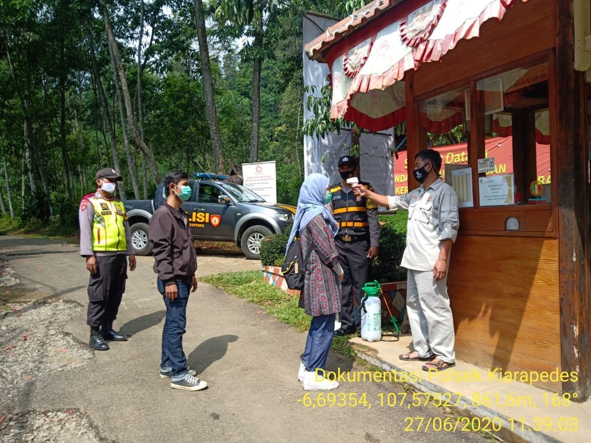 Seperti halnya dilakukan Polsek Kiarapedes, Polres Purwakarta yang melakukan pengcek protokol kesehatan di area wisata alam Pasir Lang-lang Panyawangan yang mulai dipadati pengunjung.