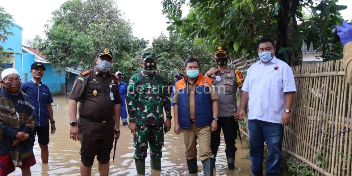 Dandim 0611/Garut bersama Forkompimda langsung meninjau ke lokasi yang terkena musibah banjir bandang di kecamatan Pameungpeuk Kabupaten Garut, Senin (12/10/2020).