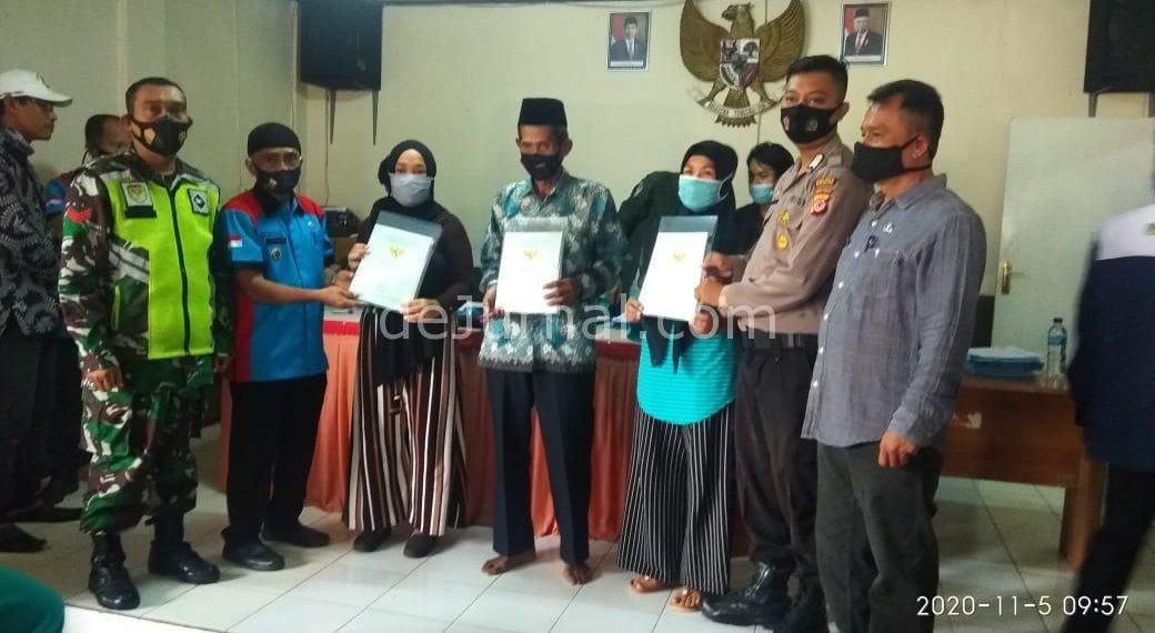 Dejurnal.com, Kab. Sukabumi – Pembagian sertifikat dari BPN dalam program PTSL di Desa Cibodas gelombang ke tiga sebanyak 215 dibagikan kepada warga penerima manfaat, Kamis (05/11/2020).