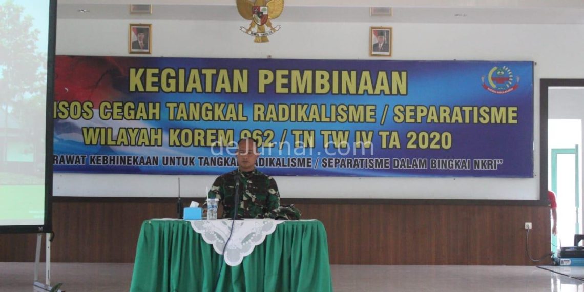 Danrem 062/Tn Kolonel Inf Muhamad Muchidin.S.Sos melalui Kasrem 062/Tn menyampaikan, kegiatan Binkomsos Cegah Tangkal Radikalisme dan Separatisme ini bertujuan untuk mewujudkan kesadaran tentang arti pentingnya pemahaman terhadap bahaya radikalisme dan sparatisme bagi segenap komponen bangsa agar terbentuknya komponen bangsa yang berkepribadian dan berjiwa Bhineka Tunggal Ika.