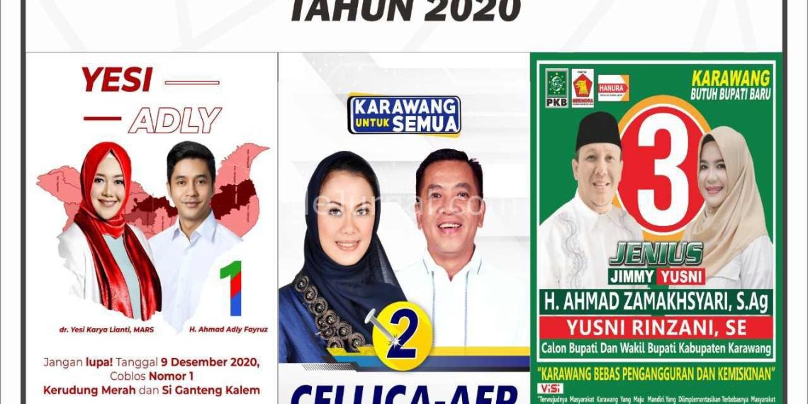 Pada Pilkada Karawang 2020 ada tiga paslon. Paslon nomor urut satu Yesi Karya Lianti-Adly Fayruz, nomor urut dua Cellica Nurrachadiana-Aep Syaepuloh, dan nomor urut tiga Ahmad Zamakhsyari-Yusni Rinzani.*** GD / RF