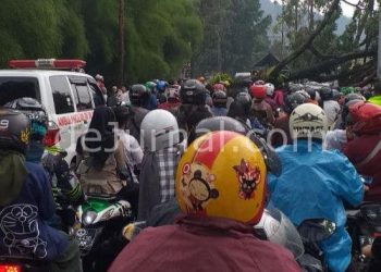 Pohon Tumbang Timpa Bahu Jalan, Jalur Cianjur-Cipanas Macet Total