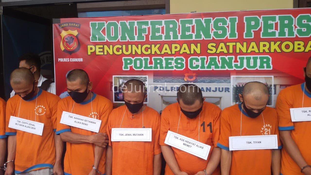 Dejurnal.com, Cianjur – Polres Cianjur dalam kurun waktu 10 hari berhasil mengamankan 7 orang tersangka Bandar Narkoba serta penjual miras dan 1 orang penjual obat-obatan yang diedarkan serta diperjualbelikan di wilayah Hukum Polres Cianjur, senin, (30/11/2020)