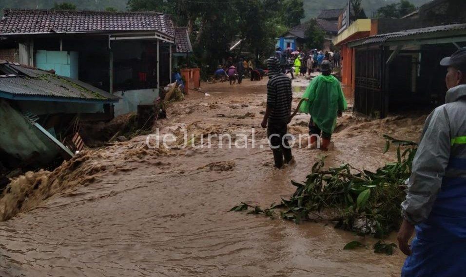 dejurnal.com, Cianjur – Akibat curah hujan deras dari jam 13.00 WIB s/d 16.00 WIB, menyebabkan meluapnya air sungai, dampaknya luapan air menerjang pemukiman warga serta lahan pesawahan.