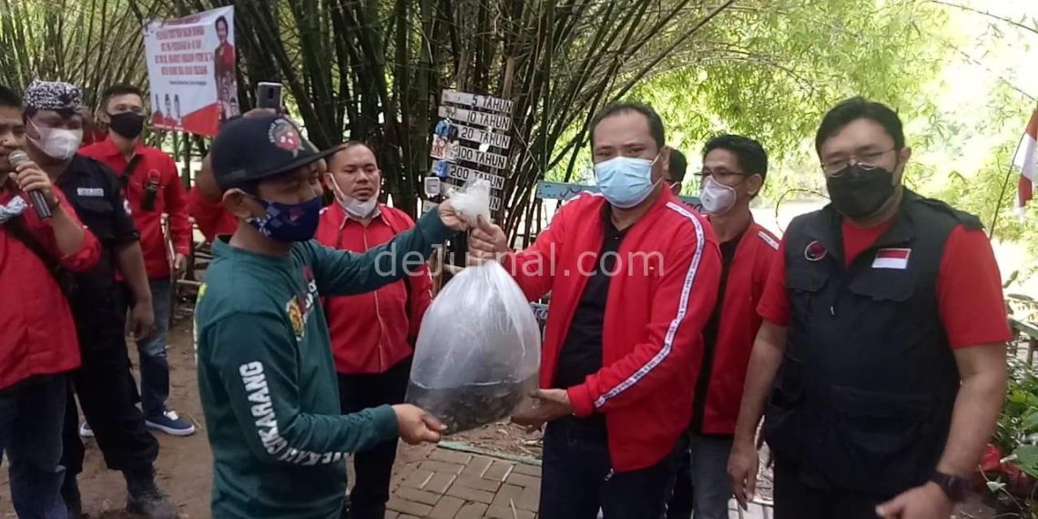 Dejurnal.com, Bekasi – Ketua DPD PDI Perjuangan Provinsi Jawa Barat sekaligus anggota DPR RI Komisi IV Ono Surono ST yang didampingi oleh Ketua DPC PDI Perjuangan Kabupaten Bekasi Soleman, melakukan kegiatan penanaman bibit pohon dan pelepasan benih ikan mujaer di lingkungan hutan bambu Warung Bongkok, di Desa Sukadanau, Kecamatan Cikarang Barat, Kabupaten Bekasi, Minggu (31/1/2021).