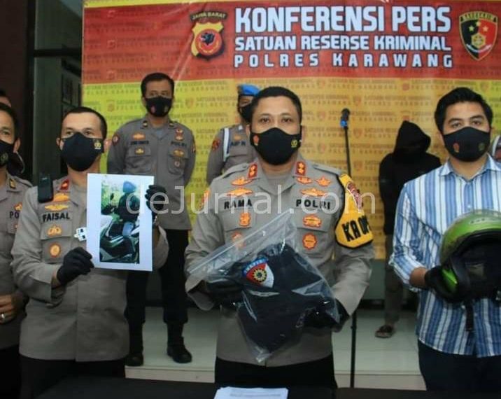selain menggelandang tersangka ke Mapolres Karawang, ada juga beberapa barang bukti yang turut diamankan oleh petugas kepolisian, diantaranya yaitu satu unit sepeda motor merk Yamaha N-Max warna Putih kemudian rekaman video dari korban, STNK, jaket helm dan kanebo yang digunakan pelaku pada saat kejadian.