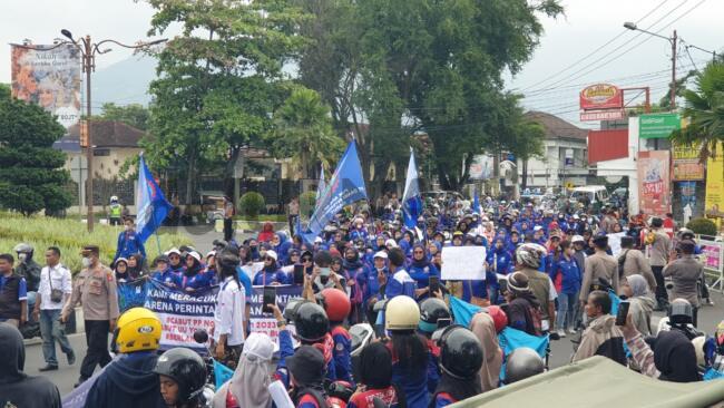 Dejurnal.com. Garut – Ribuan buruh di Kabupaten Garut melakukan peringatan Hari Buruh International (Mayday) dengan melakukan longmarch yang dimulai dari Bunderan Suci menuju Gedung DPRD dan Kantor Bupati Garut.