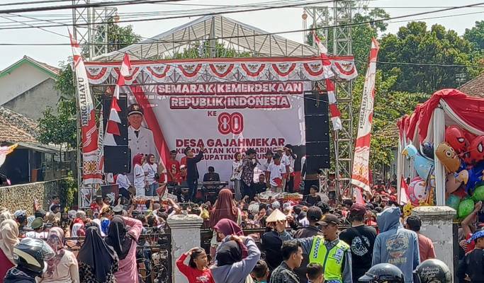 Dejurnal.com, Bandung- Penyanyi Sunda Abiel Jatnika menjadi bintang tamu Semarak Kemerdekaan Republik Indonesia ke 80 Desa Gajahmekar Kecamatan Kutawaringin Kabupaten Bandung yang digelar di halaman kantor desa setempat, Minggu (24/8/2025).