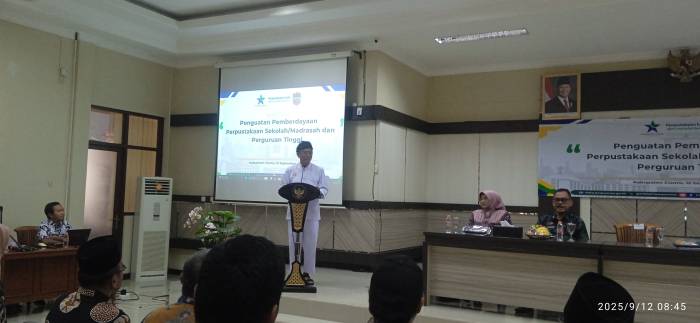 Dejurnal, Ciamis,- Pemerintah Kabupaten Ciamis bersama Perpustakaan Nasional Republik Indonesia (Perpusnas RI) menggelar agenda Penguatan Pemberdayaan Perpustakaan Sekolah, Madrasah, dan Perguruan Tinggi di Aula BKPSDM Ciamis. Jumat (12/09/2025)