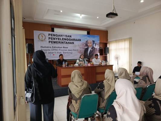 Dejurnal.com, Bandung – Anggota DPRD Provinsi Jawa Barat Humaira Zahrotun Noor melaksanakan mengundang ratusan warga Desa Gajahmekar Kecamatan Kutawaringin Kabupaten Bandung dalam acara sosialisasi Pengawasan Penyelenggaraan Pemerintahan di aula desa setempat, Jumat (10/10/2025).