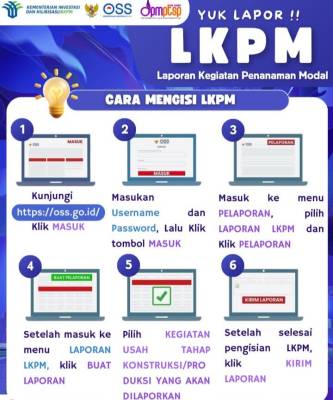 Dijelaskan Eka LKPM atau Laporan Kegiatan Penanaman Modal adalah laporan berkala mengenai perkembangan realisasi investasi dan kendala yang dihadapi pelaku usaha yang diatur berdasarkan, Undang-Undang Nomor 25 Tahun 2007 tentang Penanaman Modal dan Peraturan BKPM Nomor 5 Tahun 2021 tentang Pedoman dan Tata Cara Pengawasan Perizinan Berusaha Berbasis Risiko