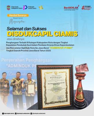 Dalam ajang Penghargaan Adminduk Prima Dukcapil se-Jawa Barat Tahun 2025, Disdukcapil Ciamis berhasil meraih Peringkat Terbaik III berkat inovasi digital unggulannya, “PASTI MANIS” atau Pelayanan Administrasi Kependudukan Sinergis, Terintegrasi untuk Masyarakat Ciamis.Penghargaan diserahkan langsung oleh Wakil Gubernur Jawa Barat kepada Kepala Disdukcapil Ciamis, Yayan Muhamad Sopyan, AP., S.I.P., M.M., dalam acara penganugerahan yang berlangsung di Gedung Sate, Bandung, Rabu (8 Oktober 2025).