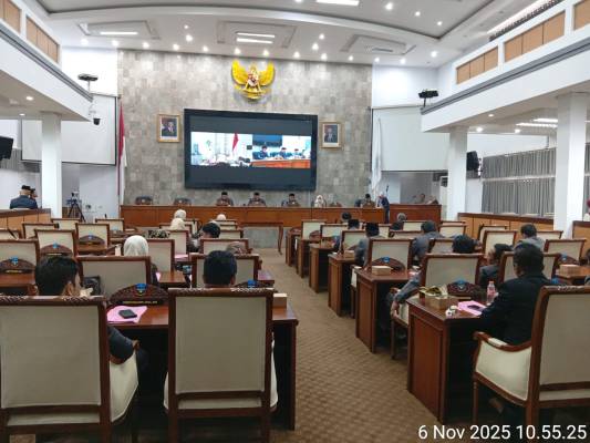 Drjurnal.com, Garut – DPRD Kabupaten Garut menggelar Rapat Paripurna sebagaimana yang telah tersusun agenda dan acara oleh pihak sekertariat DPRD Kabupaten Garut, dan disela Rapat Paripurna DPRD Kabupaten Garut Masa Sidang I Tahun Sidang 2025, dalam rangka pembahasan terkait Raperda Kode Etik dan Raperda Tata Beracara Badan Kehormatan DPRD Kabupaten Garut, Kamis 6 November 2025.