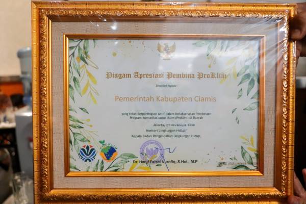 Dalam acara yang digelar di Hotel Grand Sahid Jaya, Jakarta, Senin (1/12/2025), Ciamis berhasil meraih Penghargaan Pembina Proklim Tingkat Nasional serta Penghargaan Proklim Lestari yang diberikan kepada Dusun Nagrog, Desa Kertabumi, Kecamatan Cijeungjing.