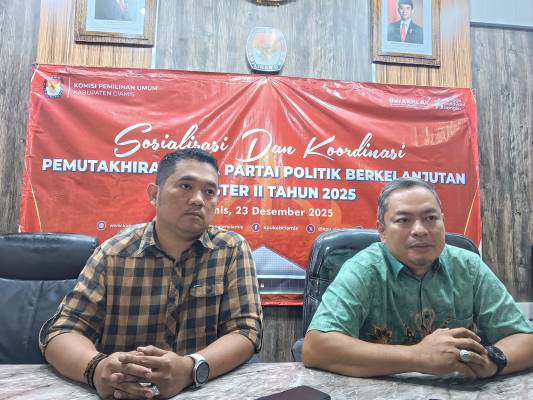 Ketua KPU Kabupaten Ciamis, Oong Ramdani, menyampaikan pemutakhiran data partai politik berkelanjutan merupakan agenda rutin KPU guna memastikan data partai politik tetap valid, mutakhir, dan sesuai ketentuan peraturan perundang-undangan.