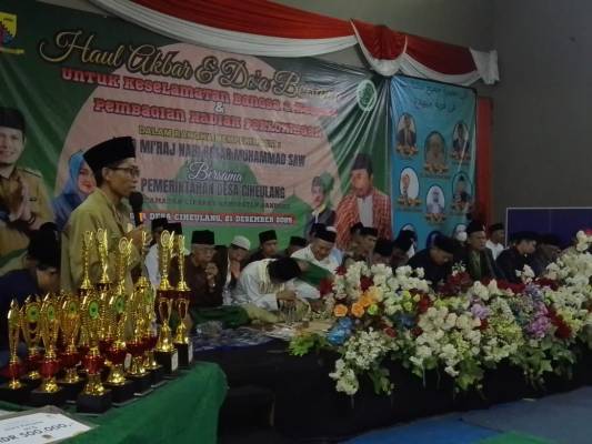 Dejurnal.com, Bandung – Pemerintah Desa (Pemdes) Ciheulang Kecamatan Ciparay Kabupaten Bandung, menggelar acara peringatan Isra Mi’raj Nabi Muhammad SAW sekaligus Haul Akbar dan doa bersama untuk keselamatan bangsa dan negara serta pembagian hadiah perlombaan, pada Minggu siang (21/12/2025). Acara ini berlangsung suasana syahdu dan khidmat di GOR Desa Ciheulang.