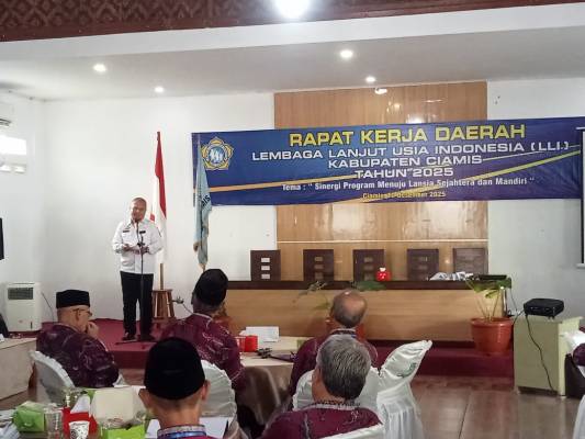Hal tersebut ditegaskan Kepala Dinas Sosial Kabupaten Ciamis, Ihsan Rasyad, AKS., MM, saat mewakili Bupati Ciamis, Dr. H. Herdiat Sunarya, dalam pembukaan Rapat Kerja Daerah (Rakerda) Lembaga Lanjut Usia Indonesia (LLI) Kabupaten Ciamis, Rabu (10/12/2025).