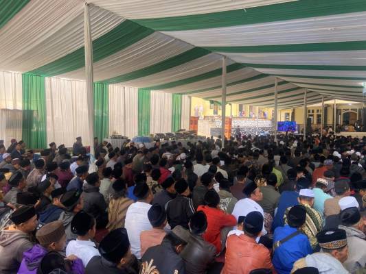 Kegiatan ini berlangsung khidmat dan penuh kekhusyukan, dihadiri ribuan jamaah, santri, tokoh agama, serta unsur pimpinan daerah.