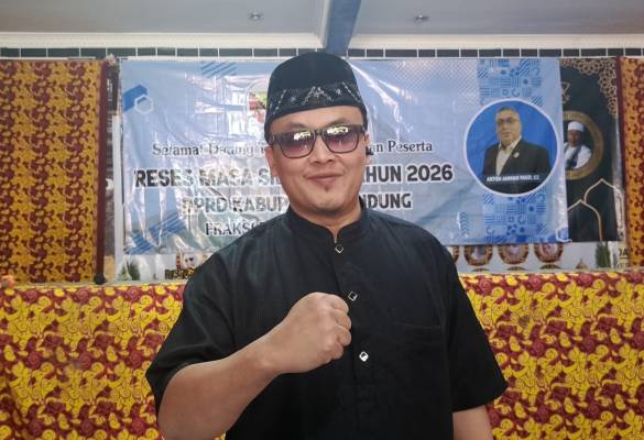 Dejurnal.com, Bandung – Dai Farid menyampaikan sambutan dan tausiah singkat pada acara reses anggota DPRD kabupaten Bandung, Anton Ahmad Fauzi yang digelar di Aula Aula Pondok Dafa Komplek Margahayu Kencana Blok F 6 No 19 RT 05 RW 11 Desa Margahayu Selatan Kecamatan Margahayu Kabupaten Bandung, Rabu 24 Februari 2026.