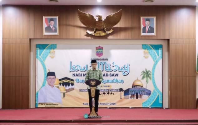 Ciamis, deJurnal,- Pemerintah Kabupaten Ciamis melalui Bagian Kesejahteraan Rakyat (Kesra) Sekretariat Daerah Kabupaten Ciamis menyelenggarakan peringatan Isra Mi’raj Nabi Muhammad SAW sekaligus Tarhib Ramadhan 1447 Hijriah/2026 M tingkat Kabupaten Ciamis di Aula Setda Kabupaten Ciamis, Kamis (5/2/2026).