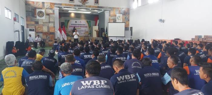 Kegiatan tersebut berlangsung di Aula Lapas Kelas IIB Ciamis dan diisi dengan penyerahan bantuan sembako serta tabligh Ramadan yang di isi oleh ustd Misjun Sidik dari ponpes Khoirul Mujtama Kertabumi.