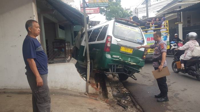 Namun, upaya tersebut justru menyebabkan kendaraan pick up menabrak bagian belakang angkutan kota yang sedang berhenti atau ngetem. Akibat benturan tersebut, angkot yang dikemudikan oleh Engkos Koswandi (58) terdorong hingga menabrak pagar rumah milik warga atas nama Firman Sidik, yang mengakibatkan kerusakan material cukup parah pada pagar rumah korban.