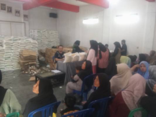 Para kpm dari pagi sudah berdatangan ke aula desa tambakbaya untuk mendapatkan bantuan pangan nasional berupa beras sebanyak 20kg dan minyak goreng 4 liter per kpm.