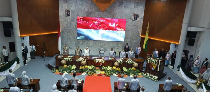 “Atas nama pimpinan dan anggota DPRD, kami mengucapkan wilujeng milangkala nu ka-385 taun Kabupaten Bandung, mugia mulus nanjung, bagea bagja mangka waluya,” ungkapnya.