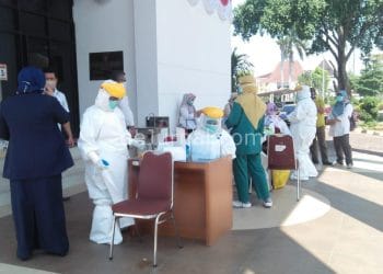 Dejurnal.com Karawang Sebanyak 40 orang di uji swab di loby gedung Paripurna DPRD selasa 30 September oleh Lab Kesda Dinkes...